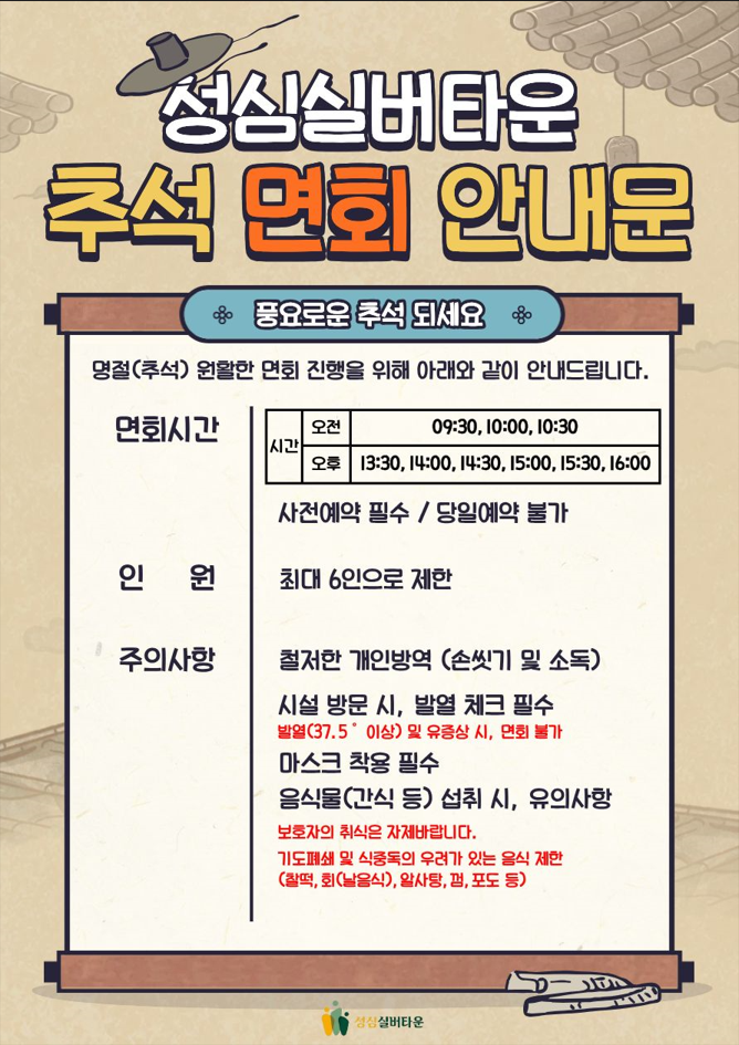 성심실버타운 명절(추석) 면회 안내문